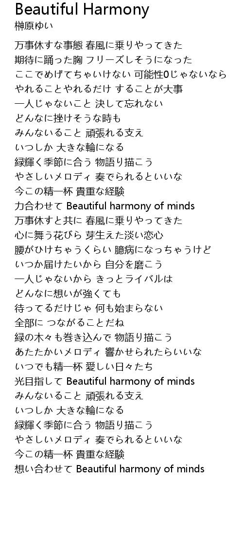 | 力合わせて Beautiful harmony of minds | |