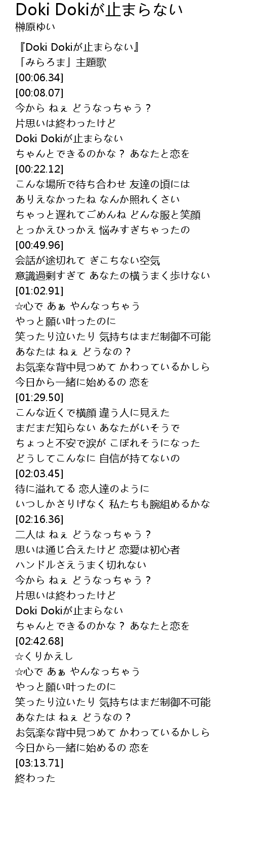 | [00:00.41] | 『Doki Dokiが止まらない』 |