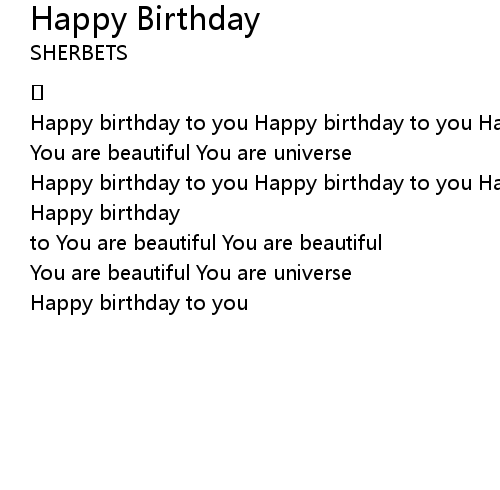 | Happy birthday to you Happy birthday to you Happy birthday | |
