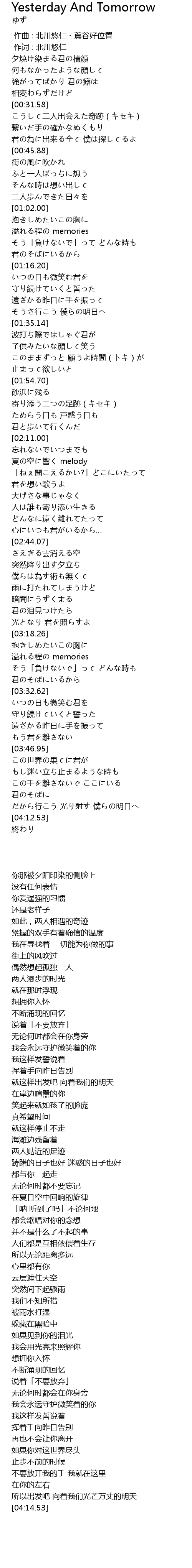 | [01:47.79] | このままずっと 願うよ時間(トキ)が |