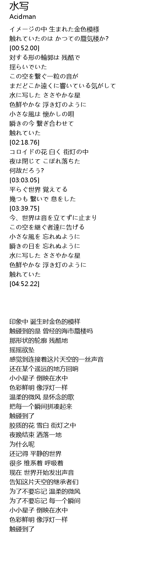 | [04:25.06] | 水に写した ささやかな星 |