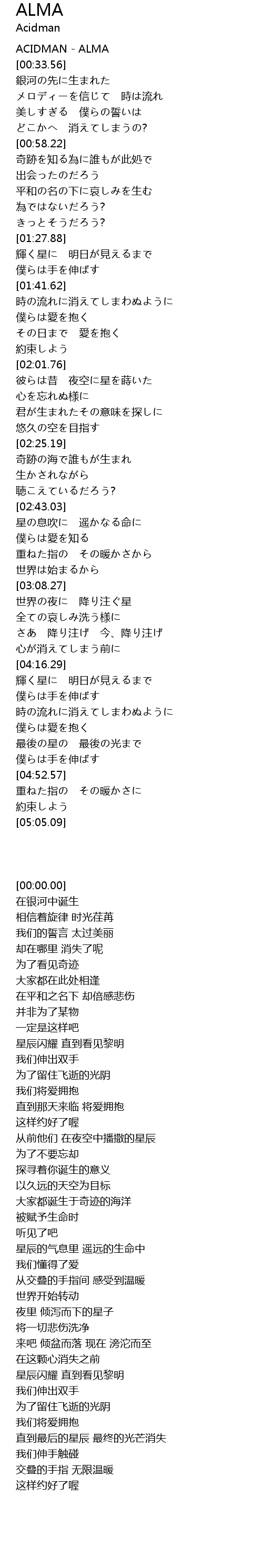 | [00:00.00] | ACIDMAN ALMA |