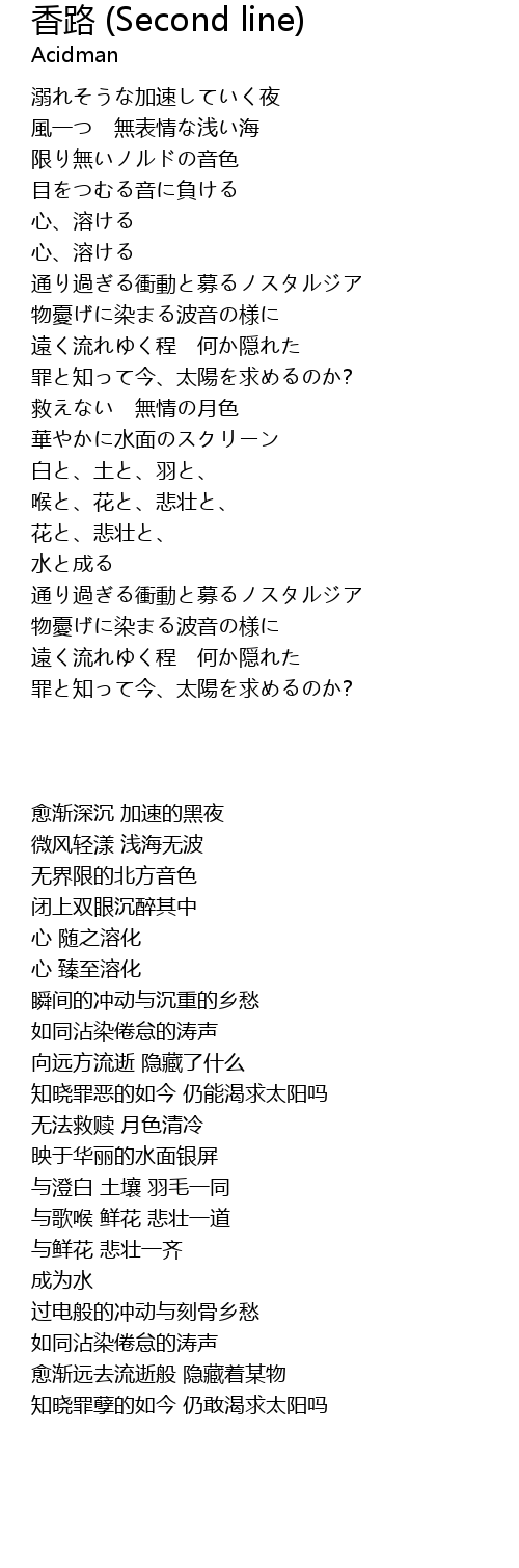 | Song | 香路 (Second line) |
