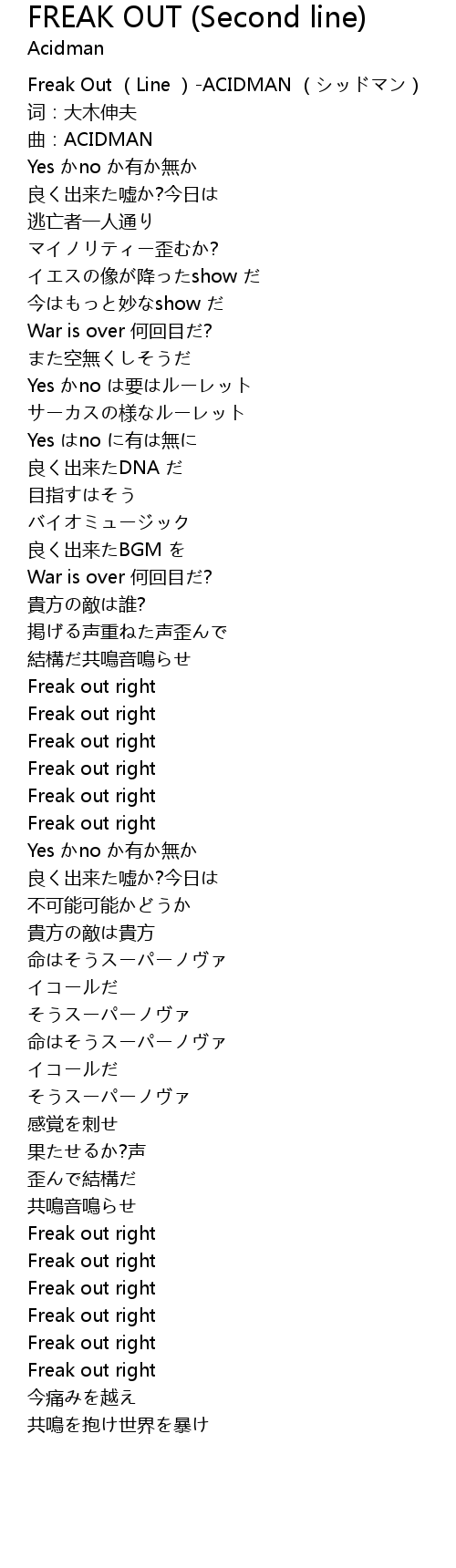 | [00:00.00] | Freak Out Line ACIDMAN |