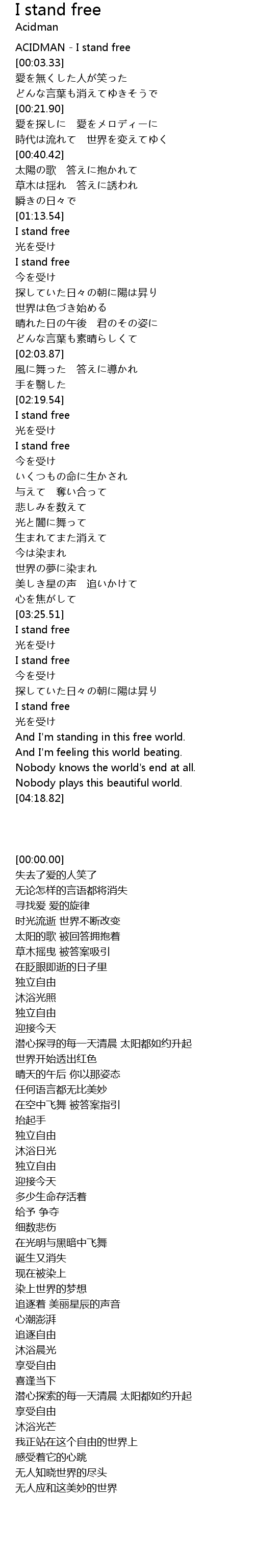 | [00:00.00] | ACIDMAN - I stand free |