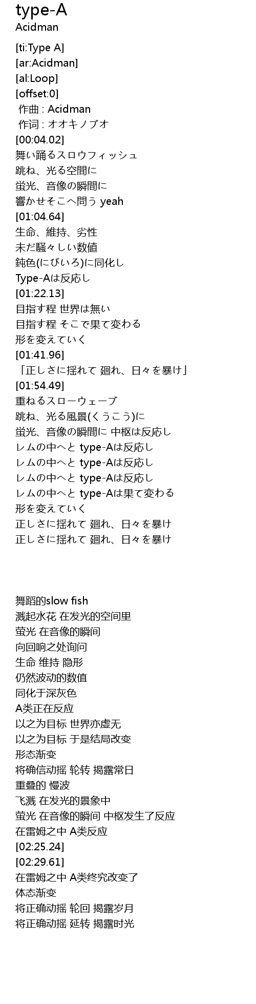 | [02:34.22] | レムの中へと type-Aは果て変わる |