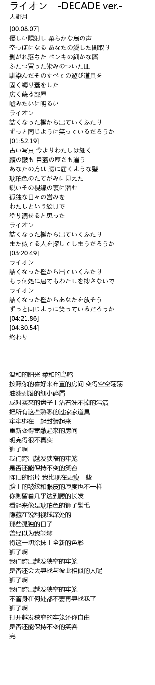 | [04:00.93] | ライオン |