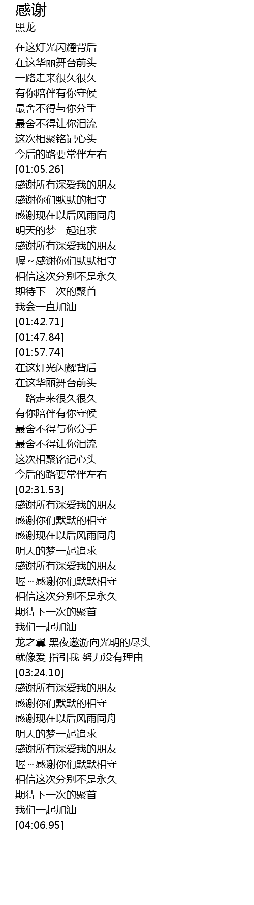 | [03:34.92] | 感谢现在以后风雨同舟 |