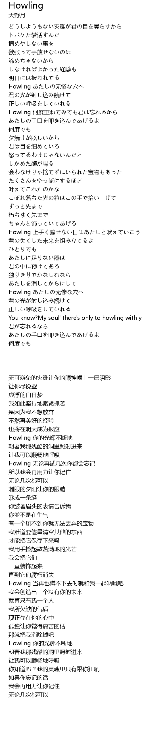 | [01:08.120] | Howling あたしの无惨な穴へ |