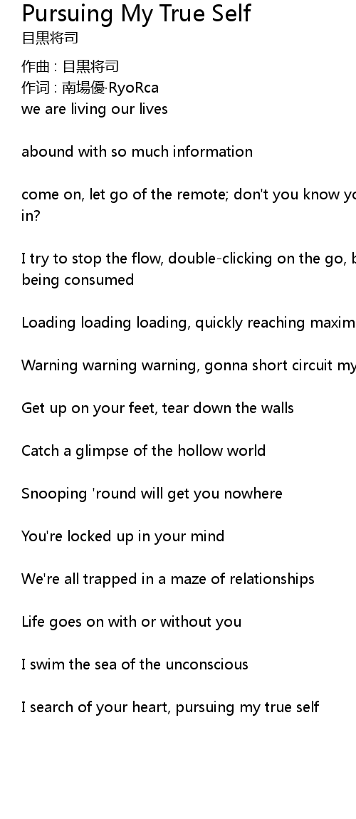 | I search of your heart, pursuing my true self |