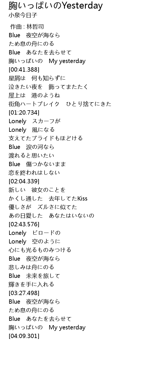 胸いっぱいのYesterday