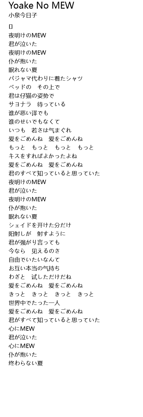 | Song | Yoake No MEW |