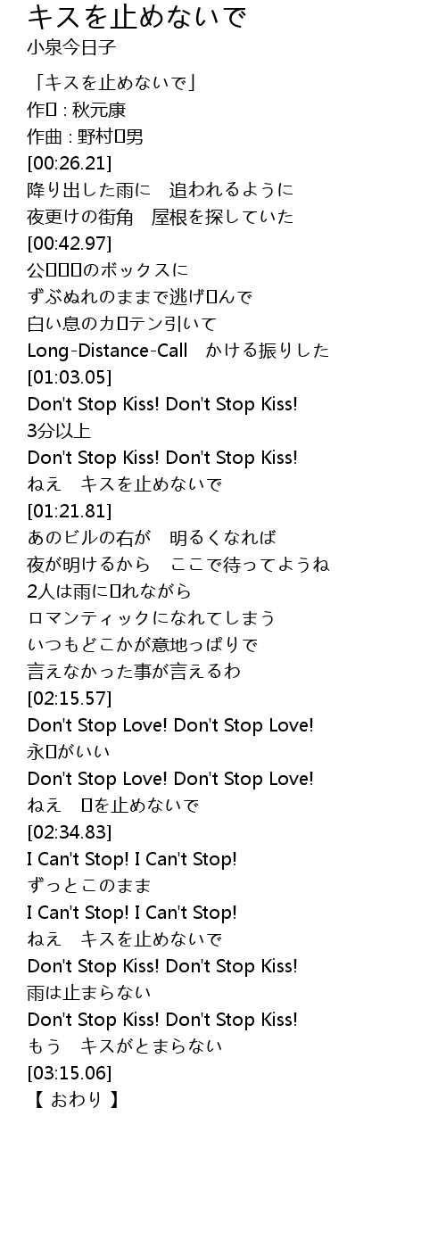 | [02:58.34] | Don't Stop Kiss! Don't Stop Kiss! |