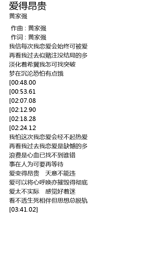 | [02:55.50][02:07.08][00:59.21] | #爱得昂贵 天意不能违 |