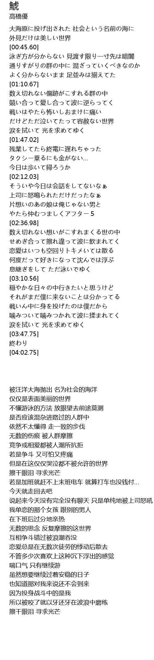 | [03:03.14] | 息継ぎをして ただ泳いでゆく |