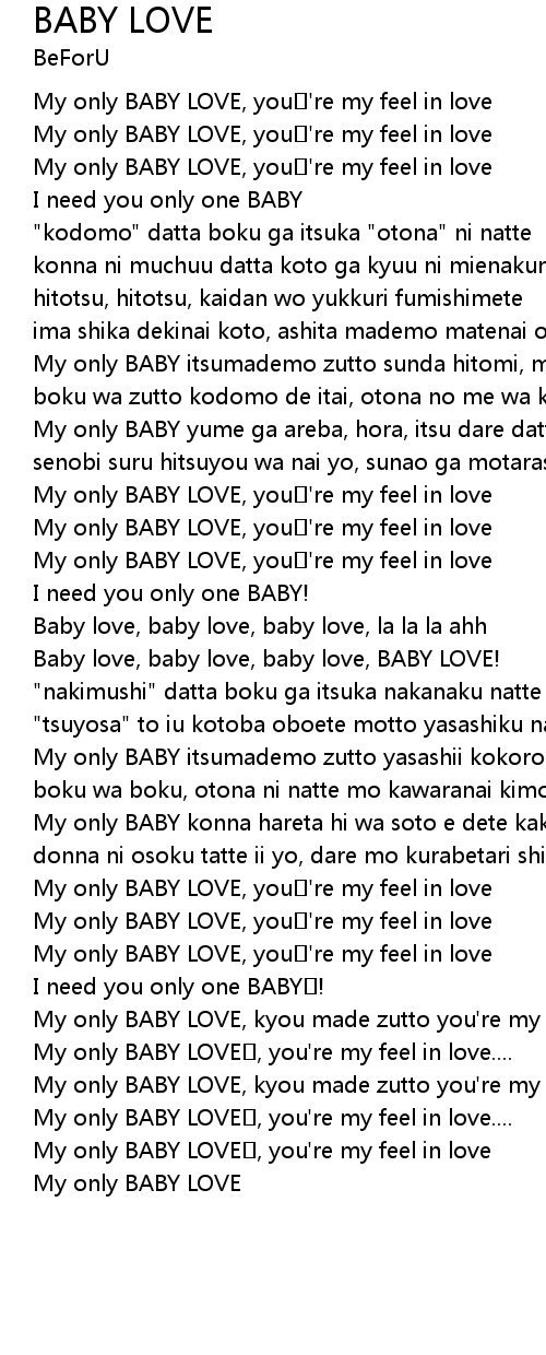 | My only BABY LOVE, kyou made zutto you' re my feel in love ashita mo zutto | |