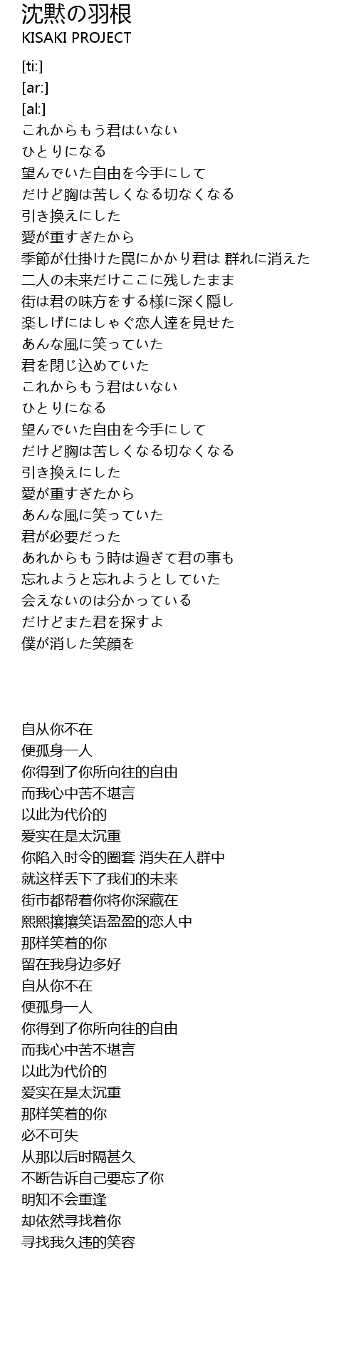 | [00:39.94] | だけど胸は苦しくなる切なくなる |