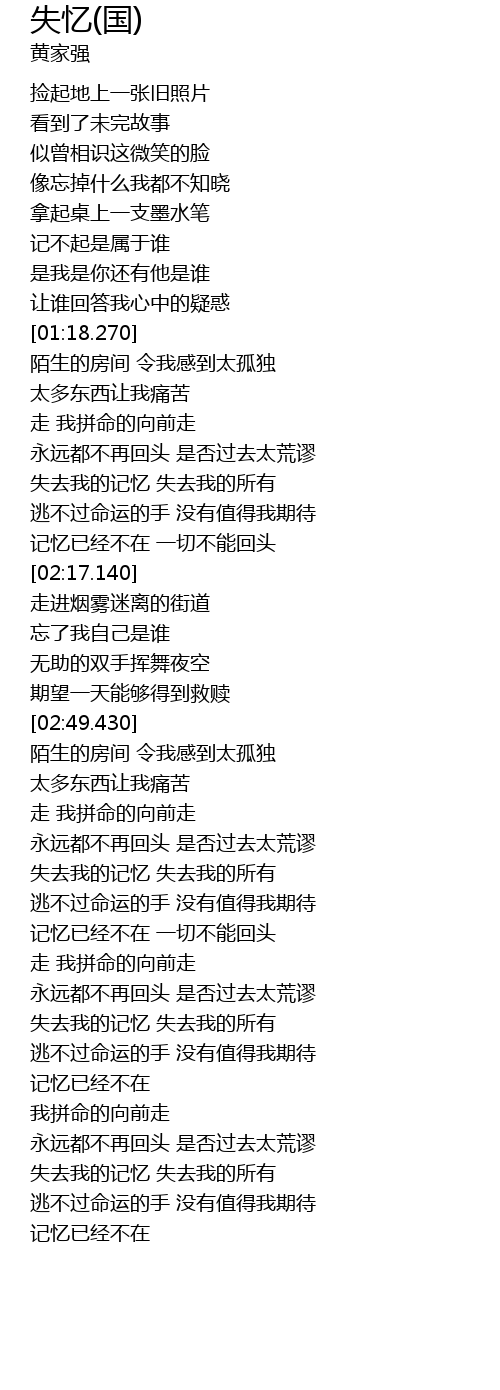 | [02:31.940] | 忘了我自己是谁 |