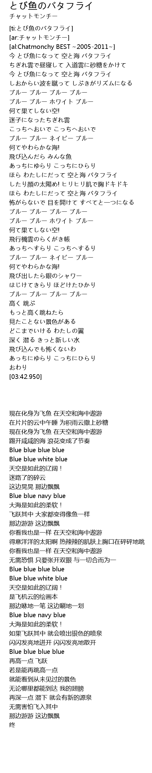 | [00:22.190] | 今 とび魚になって 空と海 バタフライ |
