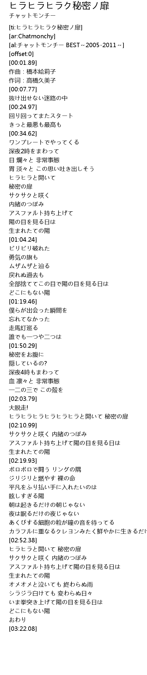 | [ti:ヒラヒラヒラク秘密ノ扉] | |