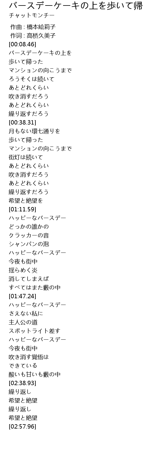 | [02:19.97] | ハッピーなバースデー |