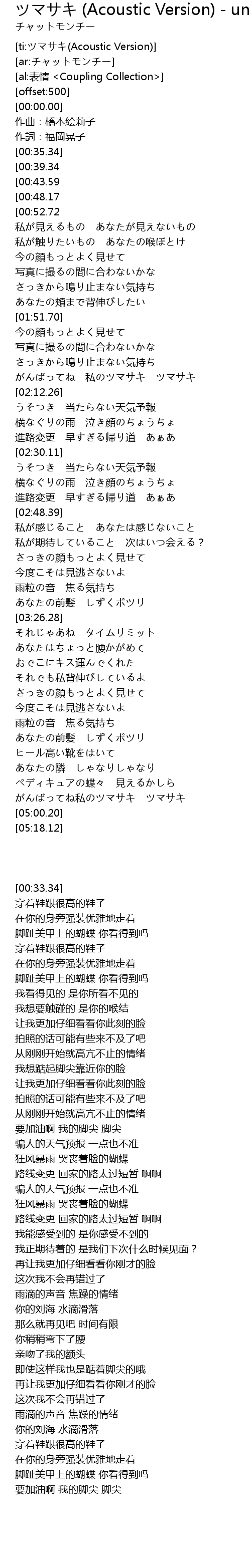 | [04:53.09] | がんばってね私のツマサキ ツマサキ |