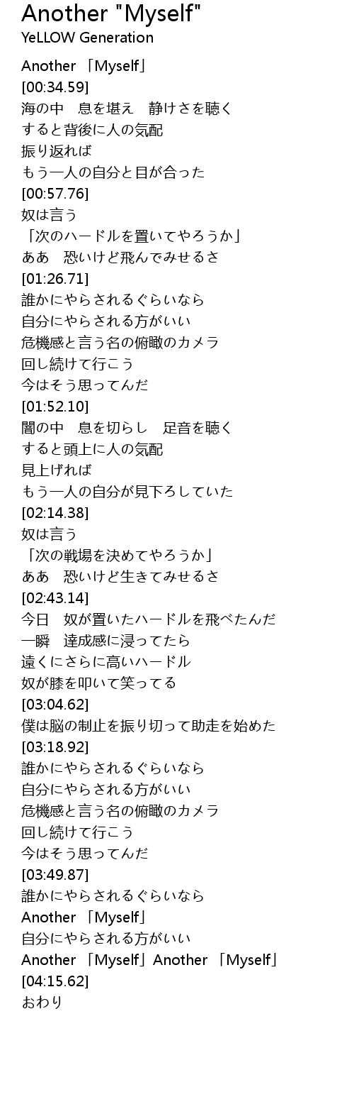 | [03:56.40] | Another 「Myself」 |