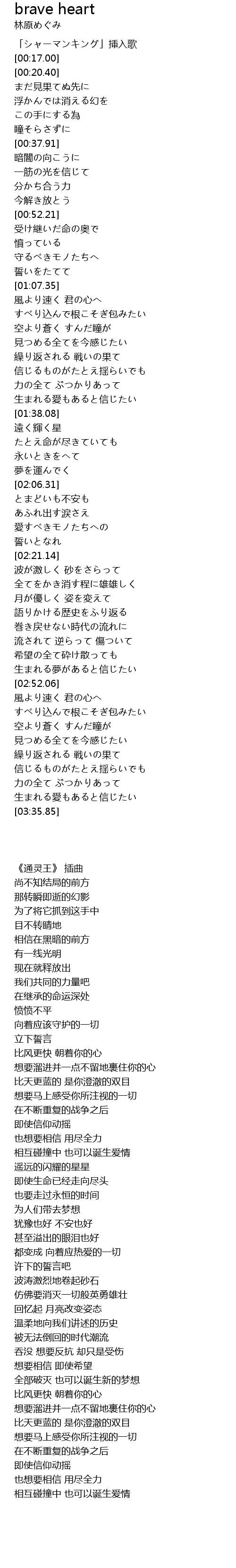 | [00:03.40] | 「シャーマンキング」挿入歌 |