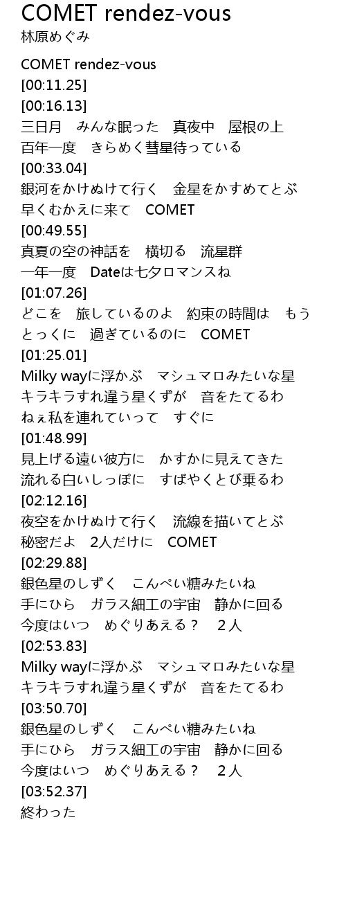 | [02:22.87] | 秘密だよ 2人だけに COMET |
