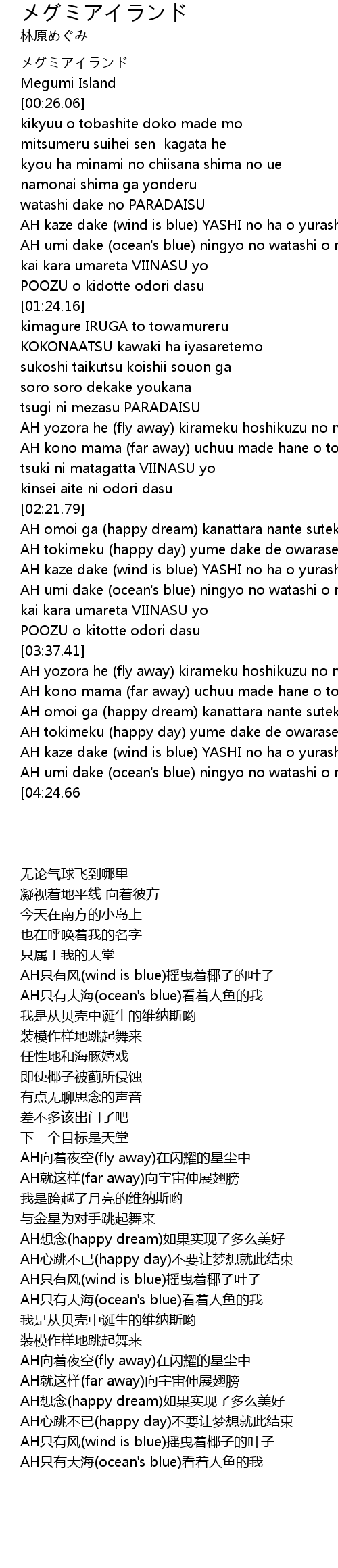 | [00:19.93] | Megumi Island |