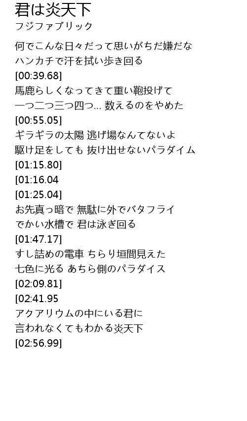 | [02:52.95] | 言われなくてもわかる炎天下 |