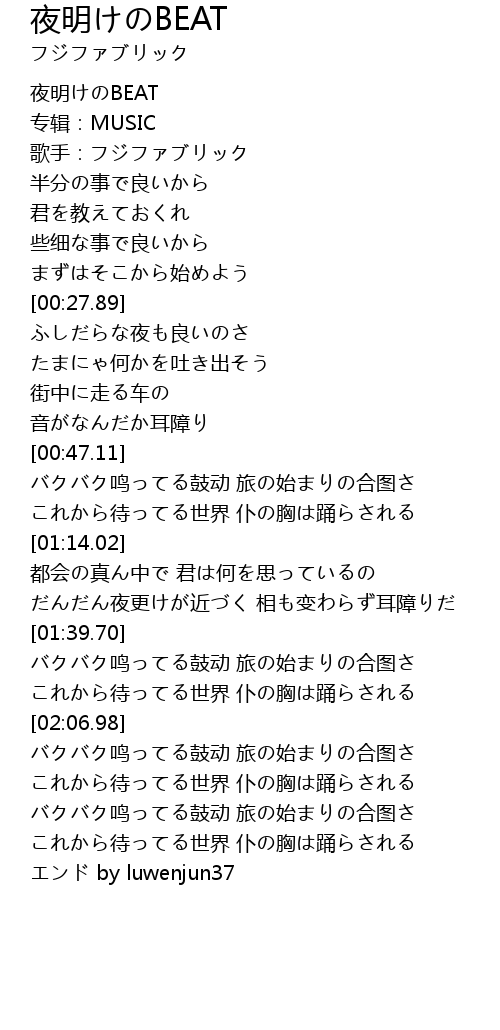 | [00:00.00] | 夜明けのBEAT |