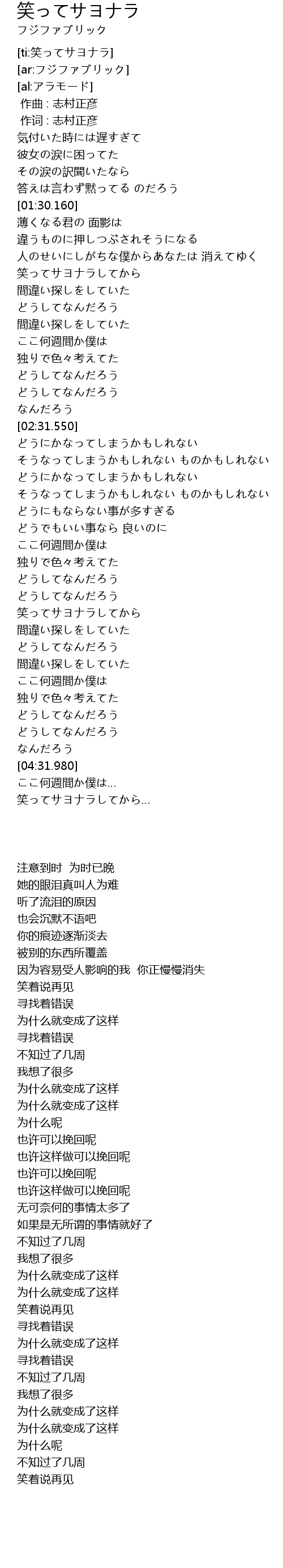 | [04:43.440] | 笑ってサヨナラしてから… |