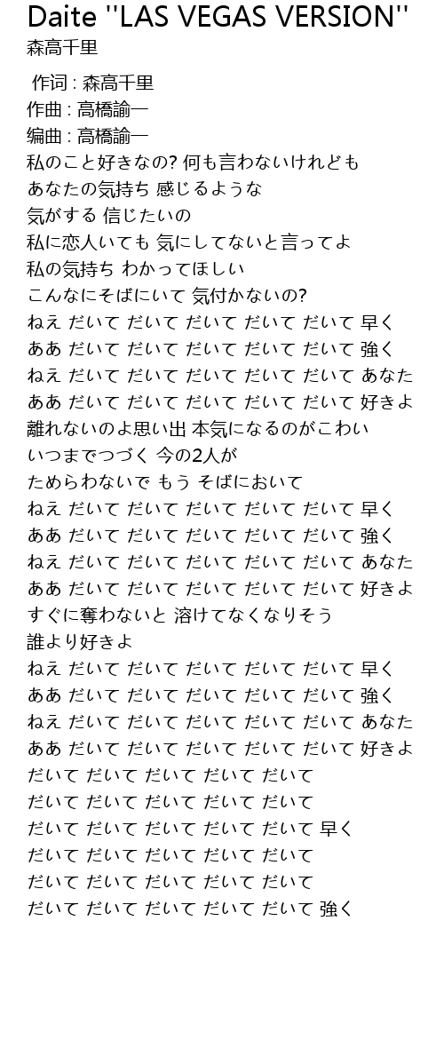 | [03:56.364] | ああ だいて だいて だいて だいて だいて 好きよ |