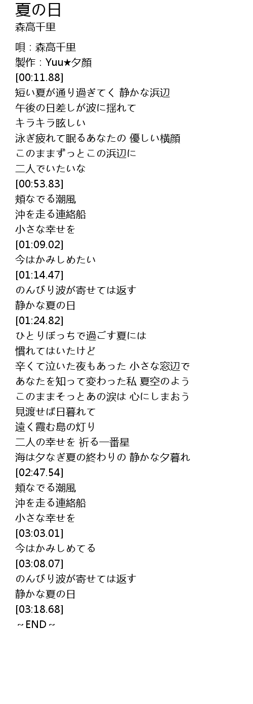 | [00:23.49] | 午後の日差しが波に揺れて |