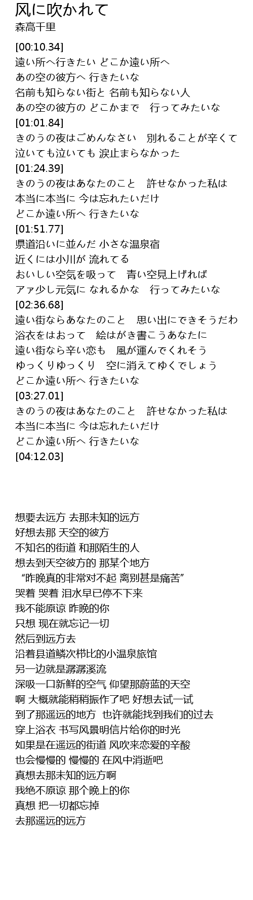 | [00:20.34] | 遠い所へ行きたい どこか遠い所へ |