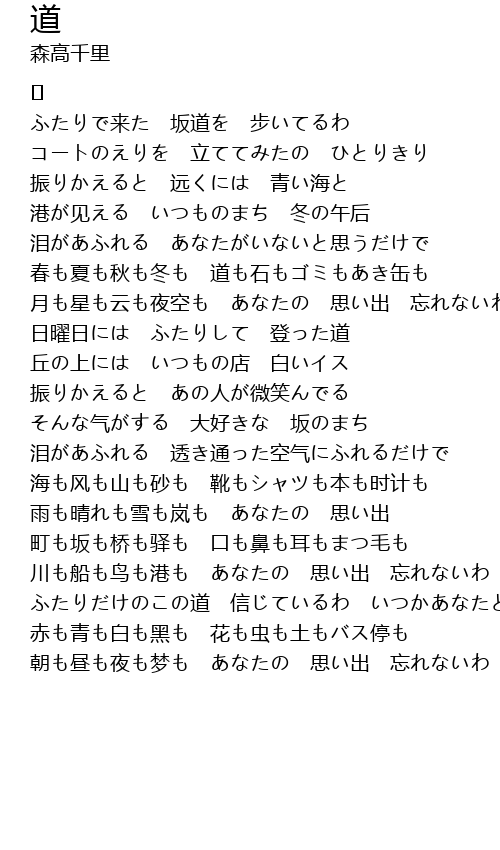 | 町も坂も桥も驿も 口も鼻も耳もまつ毛も | |