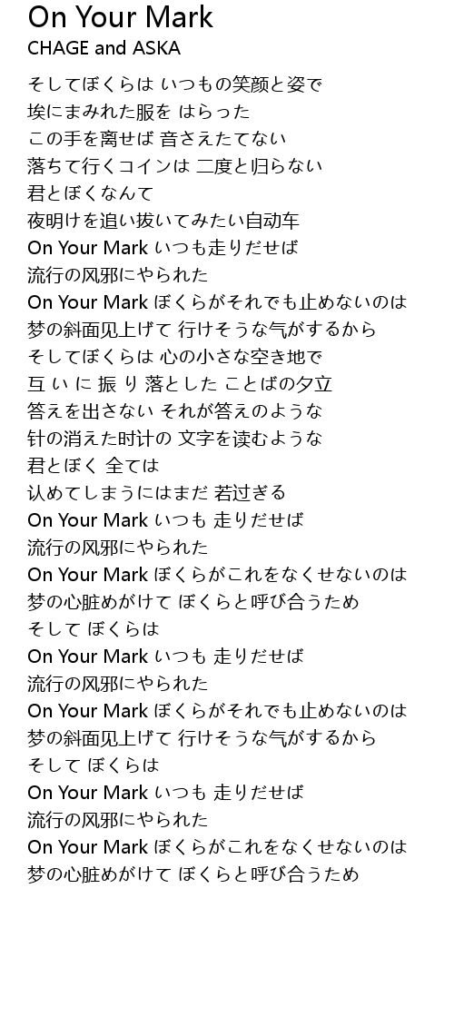 | [01:58.270] | On Your Mark ぼくらがそれでも止めないのは |