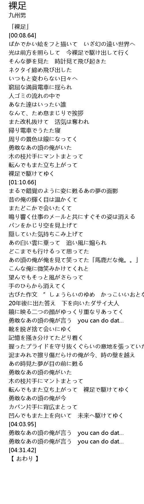| [03:32.72] | 転んでもまた立ち上がって 裸足で駆けてゆく |