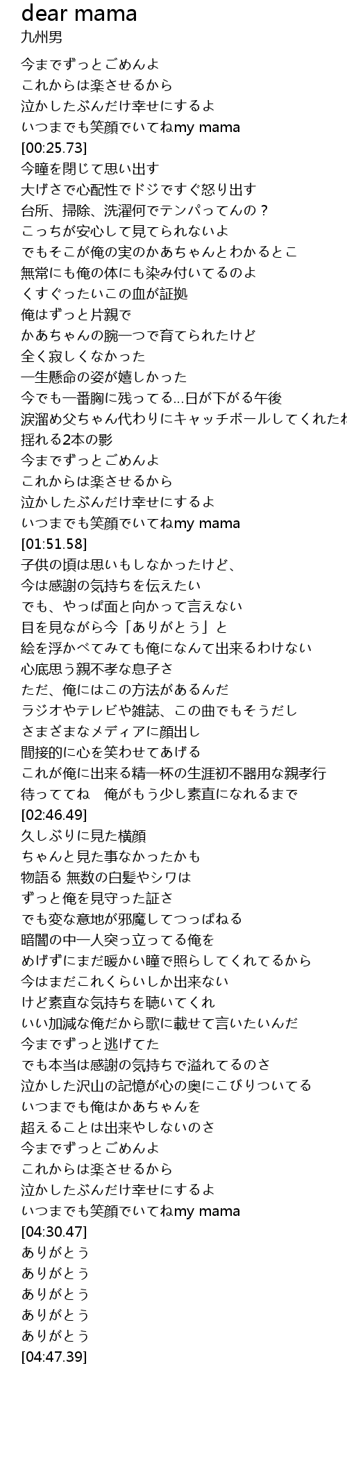 | [01:47.15] | いつまでも笑顔でいてねmy mama |
