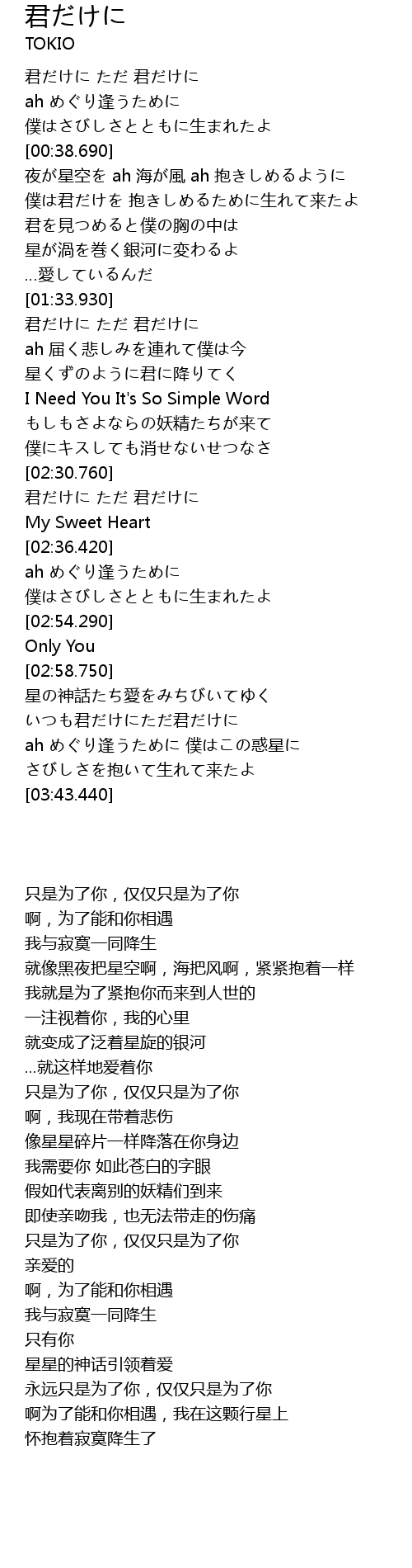 | [01:38.650] | 君だけに ただ 君だけに |
