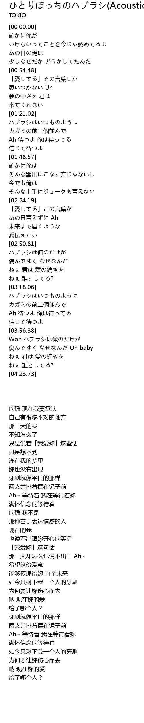 | [03:56.74] | Woh ハブラシは俺のだけが |
