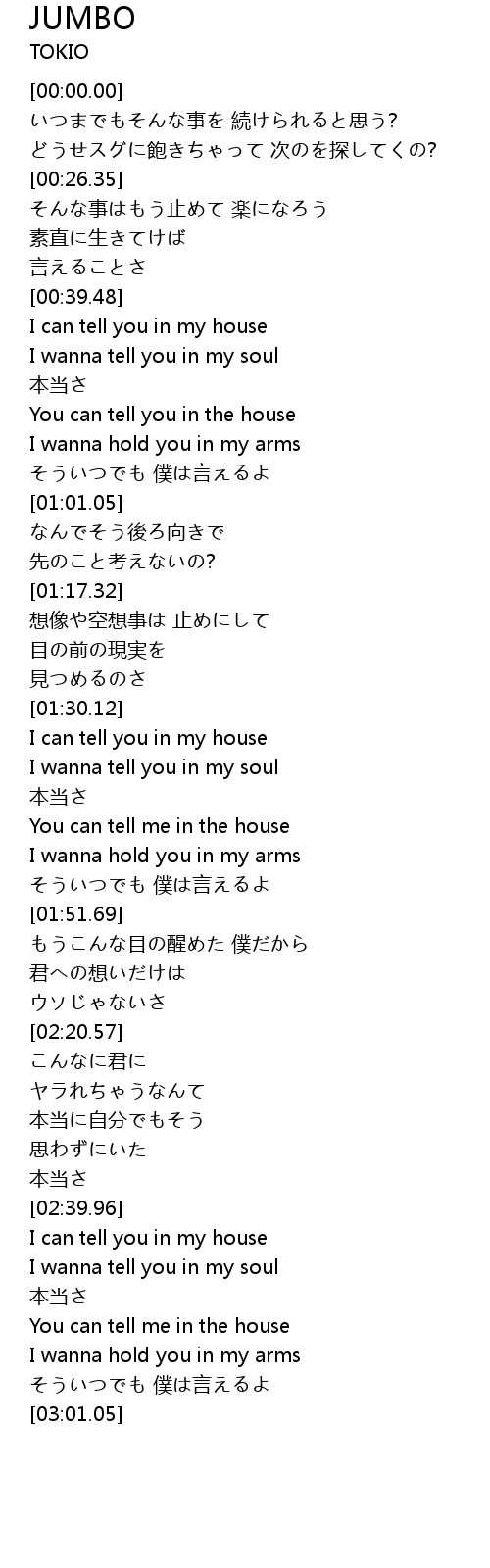 | [00:57.23] | そういつでも 僕は言えるよ |
