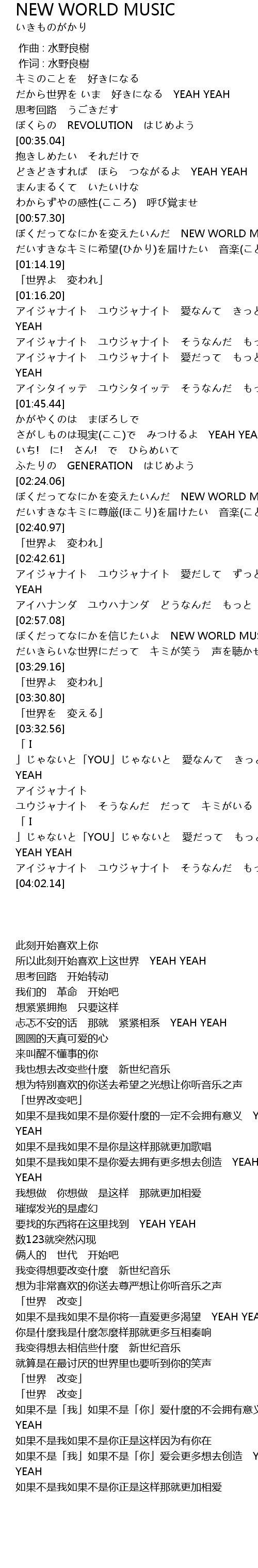 | [02:24.50] | ぼくだってなにかを変えたいんだ NEW WORLD MUSIC |
