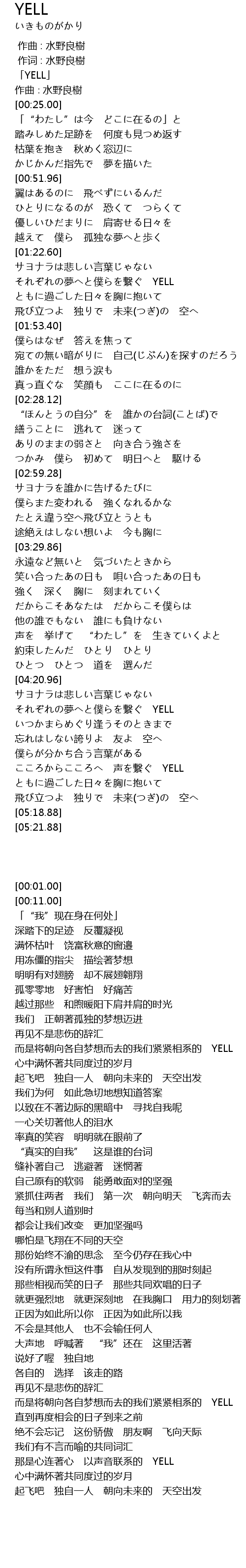 | [00:01.00] | 「YELL」 |