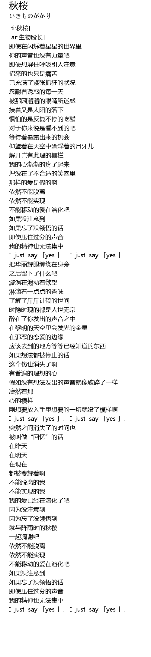 | [01:50.49] | I just say 「yes 」. I just say 「yes 」. |