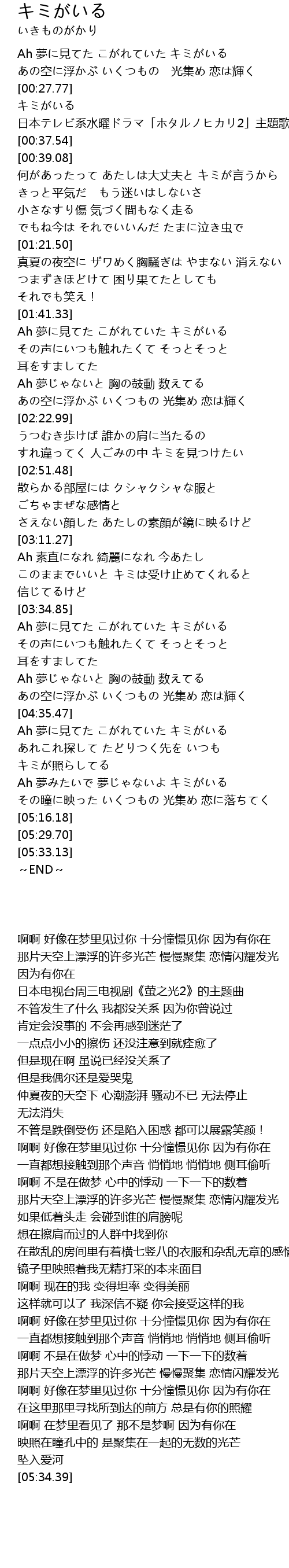 | [00:29.08] | キミがいる |