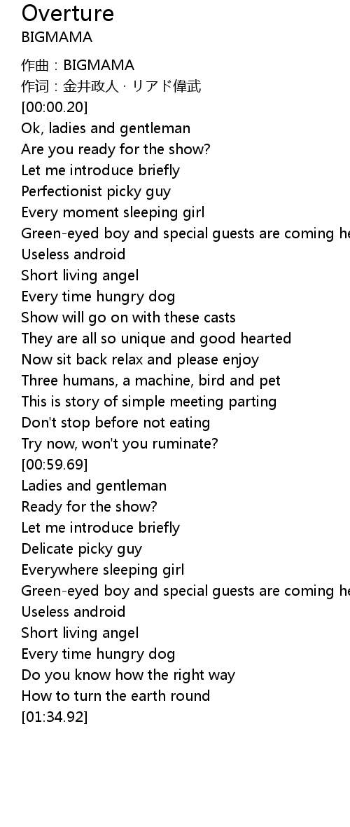 | [00:00.00] | zuò qǔ: BIGMAMA |
