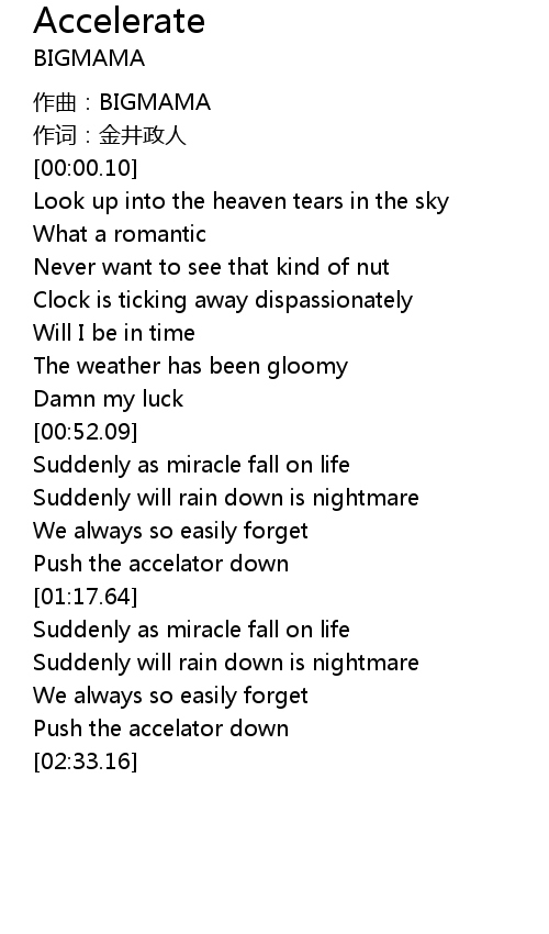 | [02:27.48] | Push the accelator down |