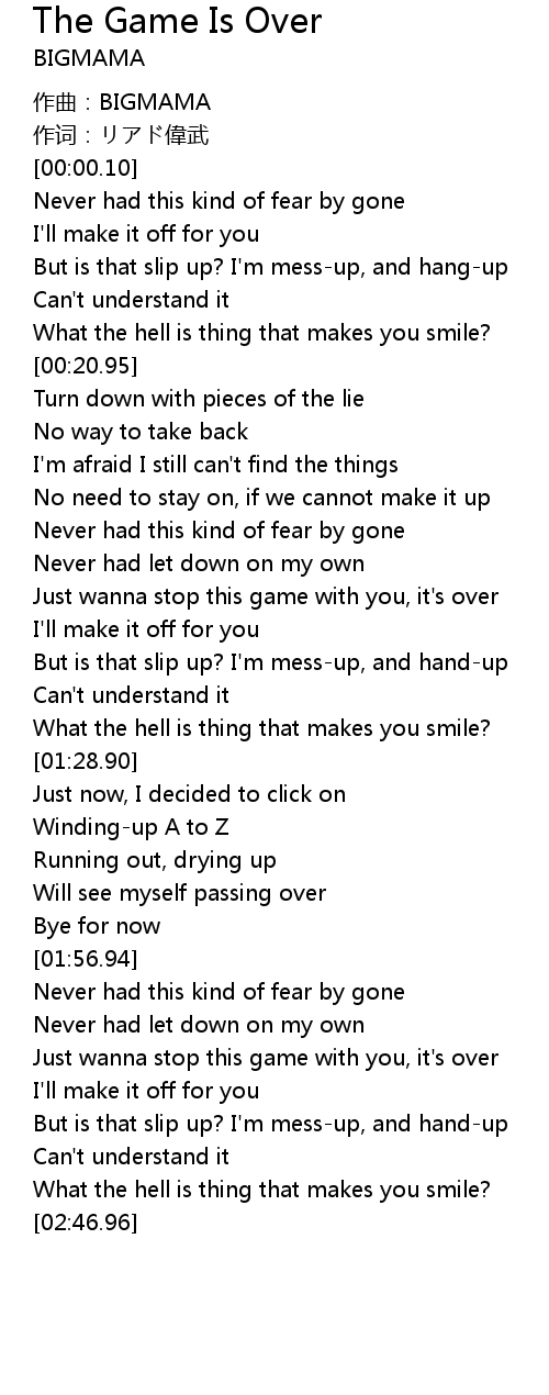 | [02:28.44] | Just wanna stop this game with you, it's over |